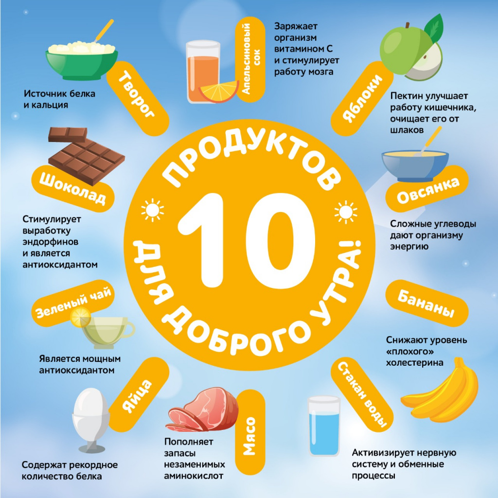 Завтрак очень важен, но каким он должен быть? Все зависит от вашей планируемой физической активности в течение дня. Если вы собираетесь много ходить, провести активную тренировку, то ваш утренний прием пищи должен содержать большое количество медленных углеводов. Если же у вас сидячая работа и вы не занимаетесь регулярно спортом, вам подойдет менее плотный завтрак, насыщенный белками. Для этих двух случаев Роспотребнадзор предлагает вам утреннее меню.